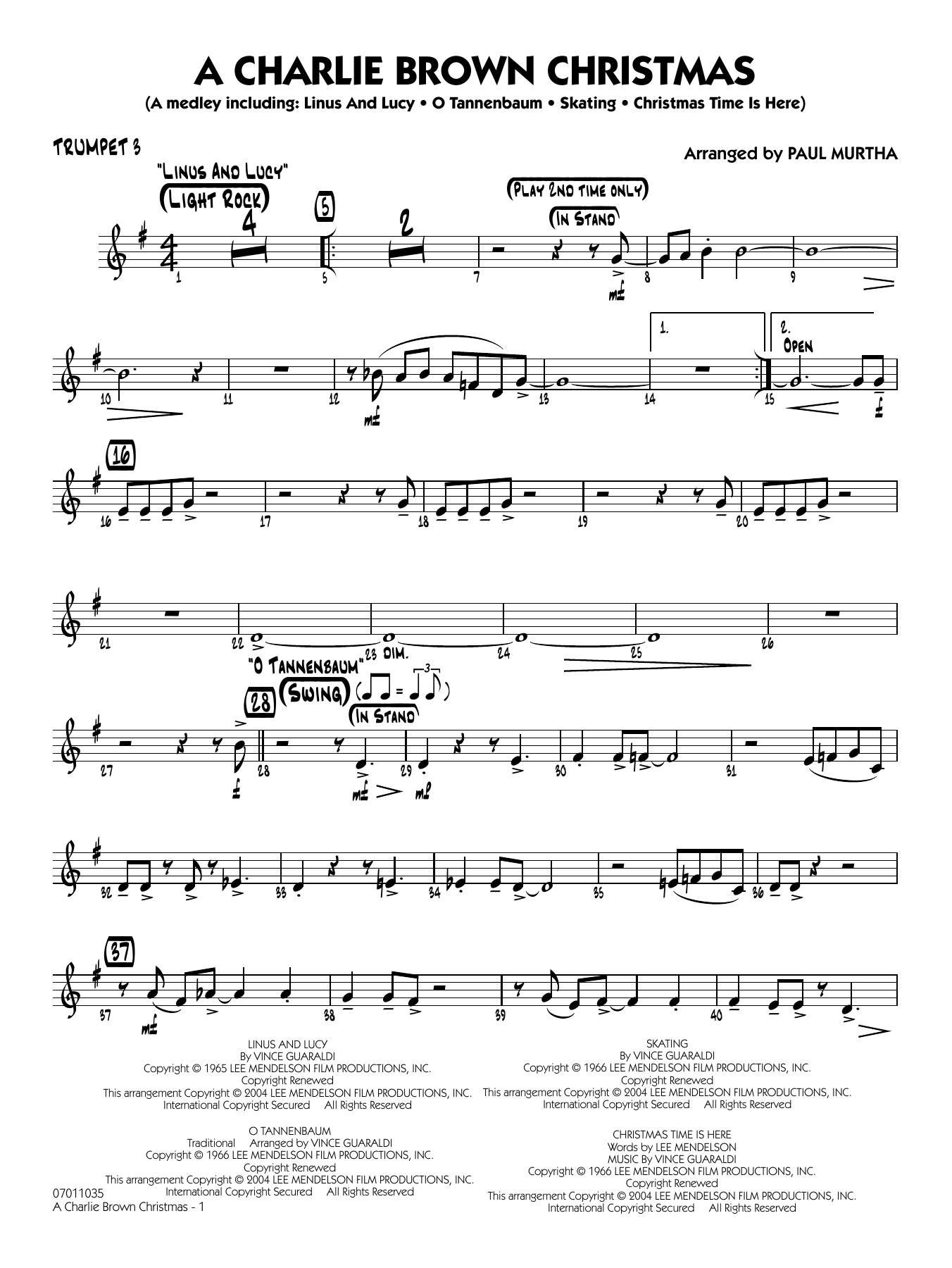 Jazz Classics for the Young Ensemble - Grade 3 Vince Guaraldi's music provided a level of jazz sophistication for the popular Charlie Brown television specials, and his holiday offerings were some of the best! This appealing medley includes Linus and Lucy, Skating, O Tannenbaum, and Christmas Time Is Here.