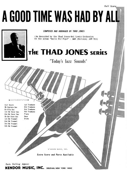 As recorded by the Thad Jones-Mel Lewis Orchestra on their 1972 album Suite For Pops, soprano sax gets the lion's share of solo action in this bright swinger, with additional solos for tenor, trumpet and drums added for good measure. Plenty of bold tutti writing keeps the overall energy (and volume) level high, making this a great program opener or closer. Duration 5:30.