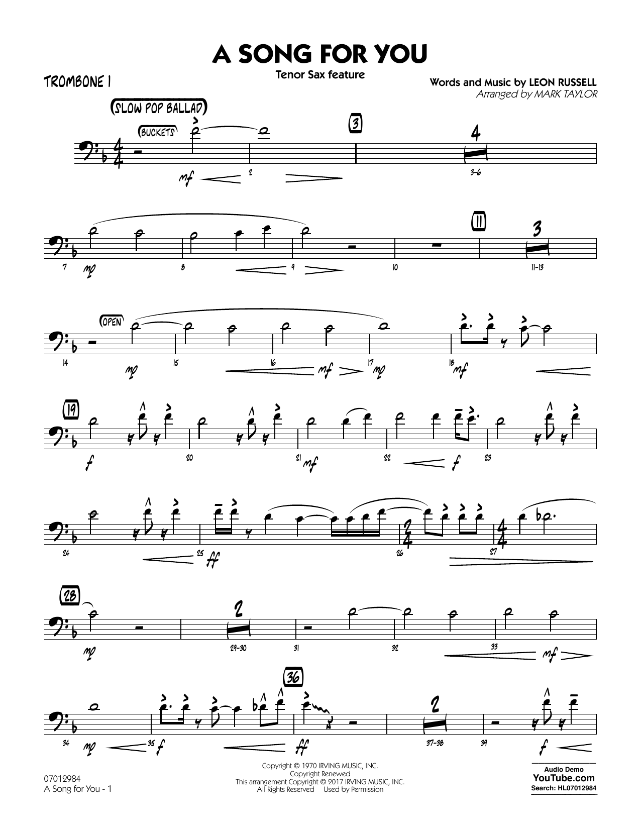 Composed in 1970, A Song For You has over the years become one of Leon Russell's most popular songs; recorded by countless artists including Peggy Lee, Michael Bublé, Ray Charles, Whitney Houston, Aretha Franklin and many others. Here is a standout version for jazz ensemble arranged as a solo feature for tenor sax.