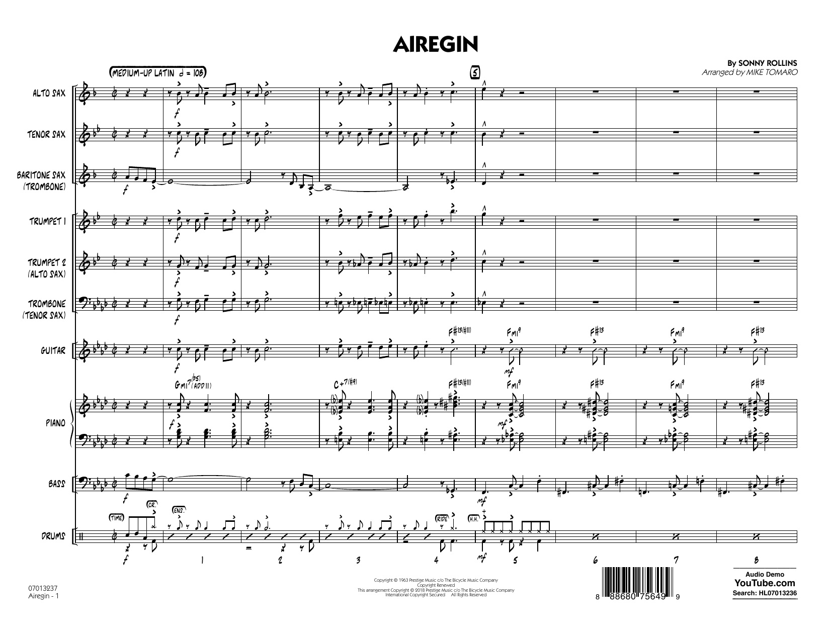 This jazz classic from Sonny Rollins features an uptempo Latin groove with alternating sections in swing. In this challenging, yet great-sounding arrangement the head is treated in a tutti format for all 6-horns, and the solo section is open for any player.