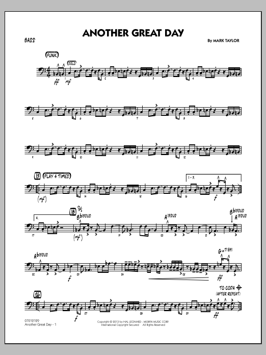 Written in a simmering medium tempo, this distinctive funk chart opens with the bass establishing the groove gradually joined by the rest of the rhythm section. A small combo of soprano sax, baritone sax, trumpet and trombone take the first statement followed by the full ensemble on intricate unison lines as well as tutti ensemble punches and riffs. Solo space is provided for tenor sax. (requires soprano sax)