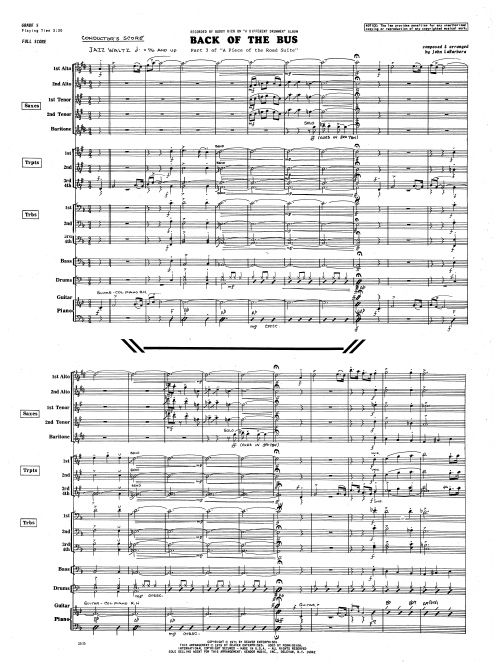 As recorded in 1971 by Buddy Rich on the album A Different Drummer (RCA Victor), this irresistible jazz waltz is a huge treat for bari sax soloists who seldom get the chance to step into the spotlight -- including optional repeats on two solo choruses and a repeated 8-bar vamp, LaBarbera allows up to 132 measures of bari solo work here! The drummer also gets a chance to cut loose in an expandable solo before the band closes with a big finish. Duration ca. 3:30.