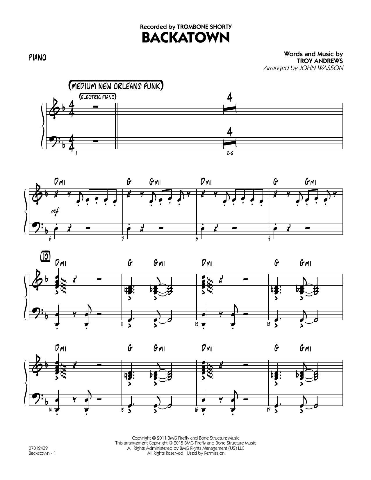 From Trombone Shorty's acclaimed CD Backatown, here is the hot title cut arranged for big band in a funky medium tempo. With a blend of catchy riffs, solid ensemble passages, and stop-time breaks, this chart exudes a spirited and unmistakable New Orleans swagger.
