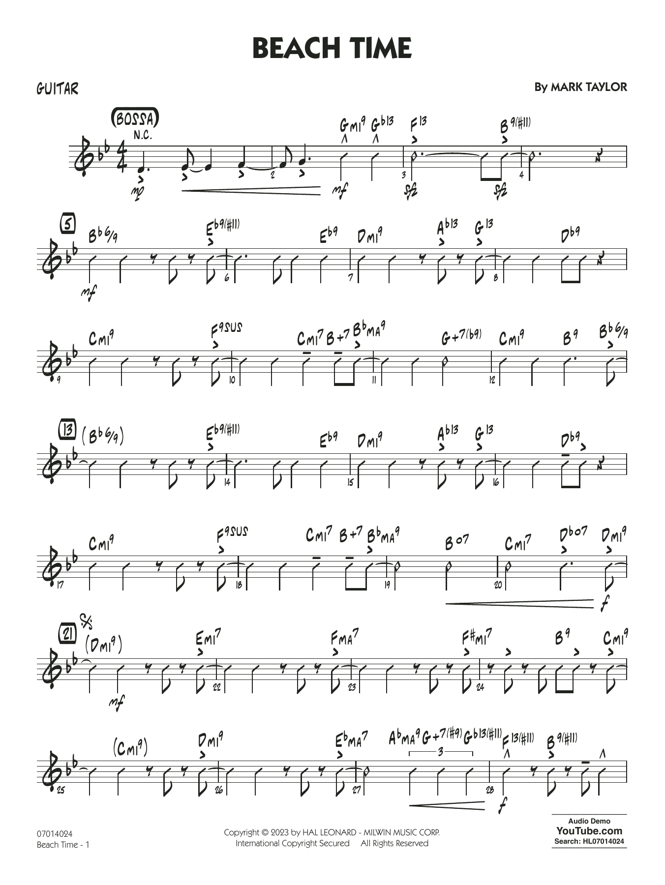 Mark Taylor hat dieses großartig klingende Original, das leicht zu lernen ist und Spaß macht, in einem moderaten Bossa-Stil geschrieben und für jüngere Spieler konzipiert. Alt-Saxophon und Trompete sind in einem Duett am Anfang und später mit geschriebenen oder ad lib.-Soli zu hören.