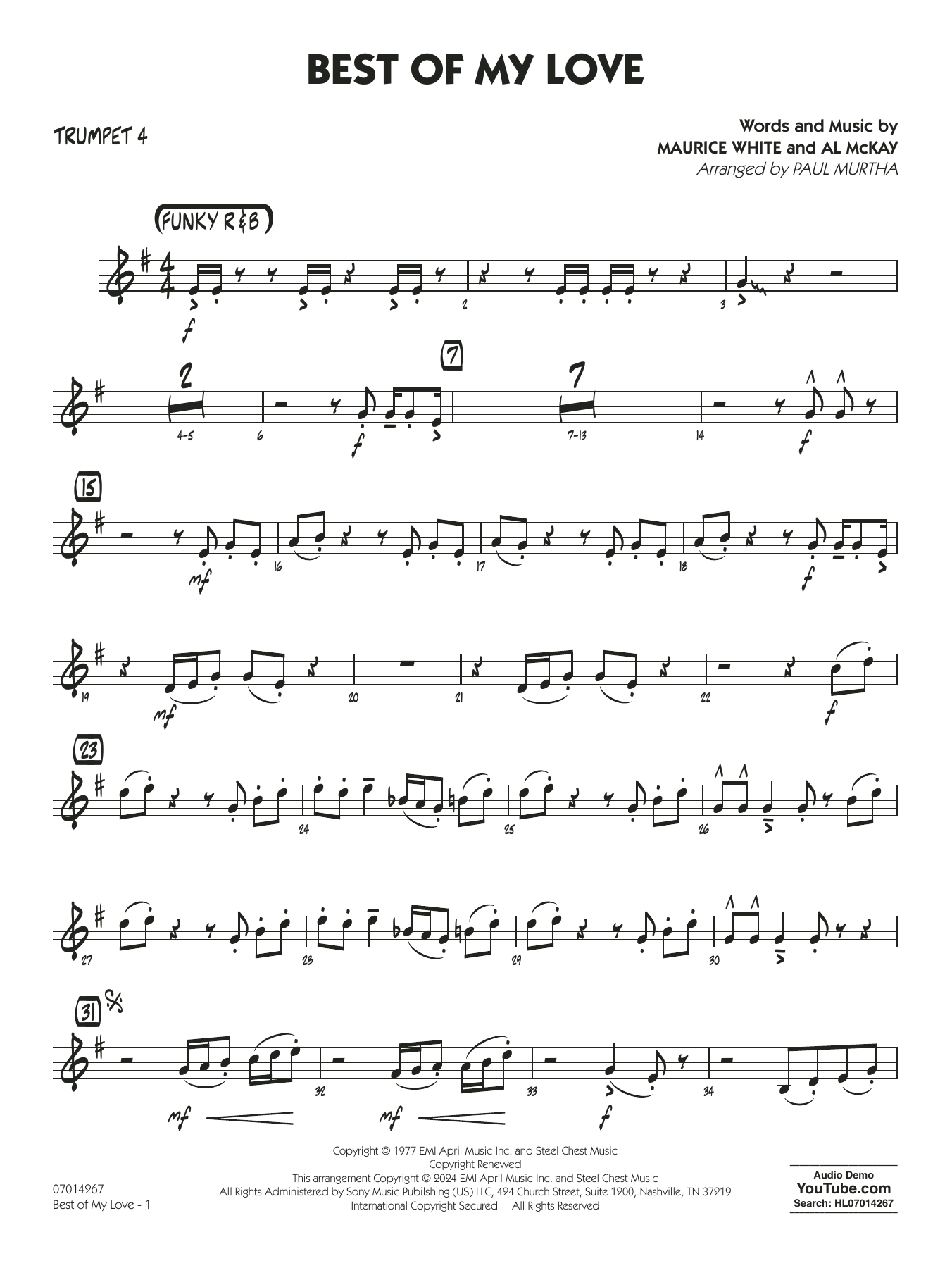 Dieser 1997 von den Emotions aufgenommene Pop-Hit hat dank der Komponisten Maurice White und Al McKay einen unverwechselbaren Earth, Wind & Fire-Vibe. Zuletzt wurde er als Grundlage für Paul Russells "Lil Boo Thang" verwendet. Hier ist ein Arrangement für junge Jazz-Ensembles, das einen funky Groove und alle charakteristischen Bläser-Riffs des Originals enthält.