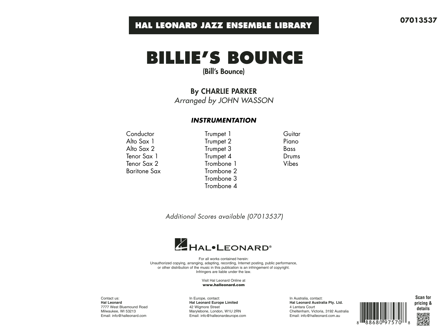 Here's an energetic big band treatment of one of jazz legend Charlie Parker's best-known tunes. John Wasson's powerful chart features an interplay between the sax and brass sections, along with solos for tenor sax and trumpet.