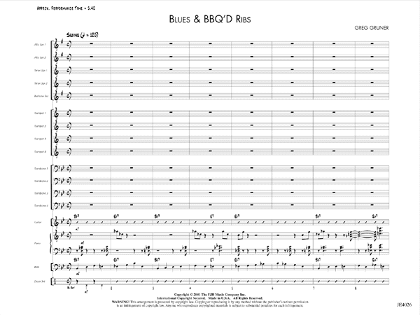 Mit einem Klavierpart im Basie-Stil, der im ersten Refrain ausgeschrieben ist, entwickelt sich dieser Blues zu einem sehr schönen Groove, bei dem die Saxophone die meiste Zeit im Vordergrund stehen. Keiner der Parts ist übermäßig anspruchsvoll und die Tonlagen sind sehr angenehm. Ein ausgezeichnetes Blues-Rezept! Kommentar zu diesem Stück.