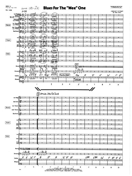 Featuring a walking bass line and an easy swing groove, piano carries the solo work in this contemporary score by the great Thad Jones. In the final half, the sound of muted brass contributes to the intimate bluesy mood. A piano solo 'ala Basie' closes it all out beautifully. Duration 4:40.