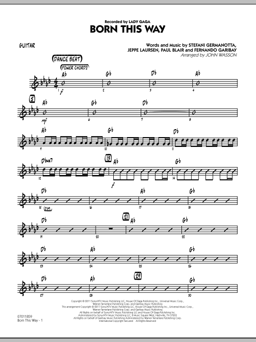 Recorded recently by Lady Gaga, this powerful rock tune is a throwback to the driving sounds of Madonna and the '80s. Solidly scored, this arrangement will come together quickly and sound great.