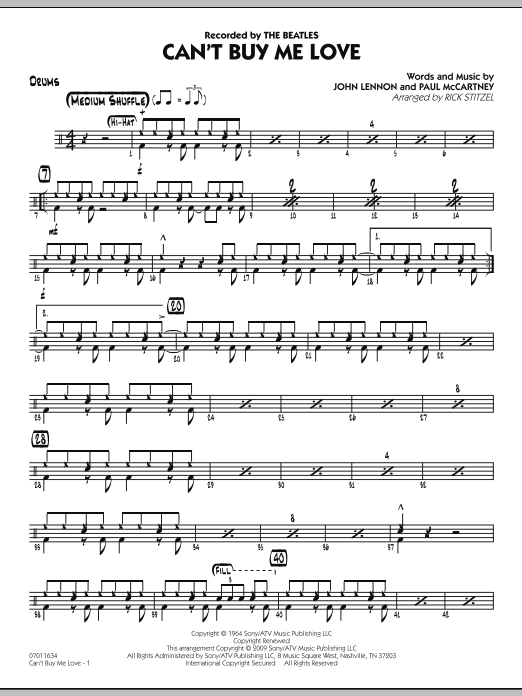 One of the many distinctive hits from the Beatles, Can't Buy Me Love is arranged here in a medium up-tempo shuffle groove and provides a marvelous swing setting for the entire ensemble.