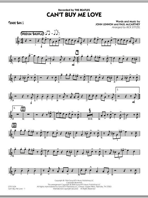 One of the many distinctive hits from the Beatles, Can't Buy Me Love is arranged here in a medium up-tempo shuffle groove and provides a marvelous swing setting for the entire ensemble.