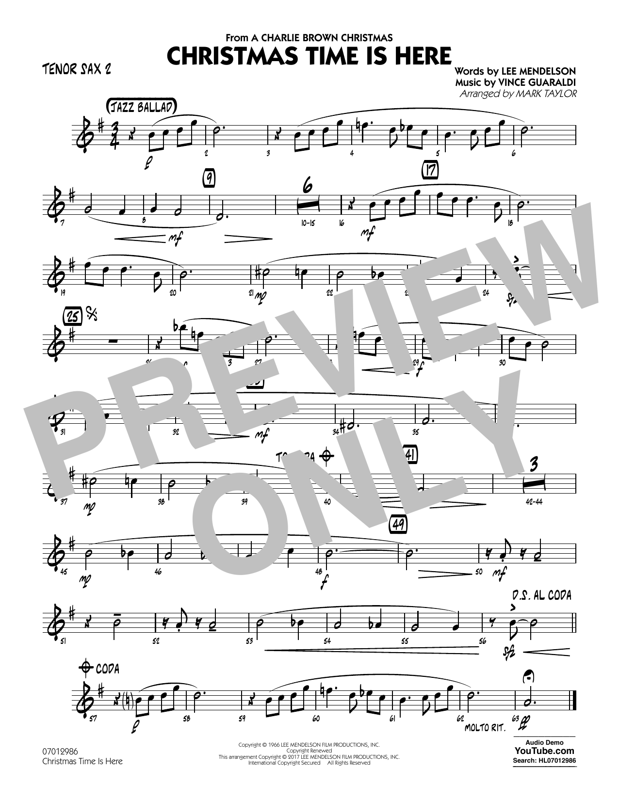Obwohl es 1965 für das Charlie-Brown-TV-Weihnachtsspecial geschrieben wurde, hat sich Christmas Time Is Here zu einem beliebten modernen Feiertagsstandard entwickelt. Hier ist eine wunderschöne Vertonung von Mark Taylor, die mit kreativen Noten und Harmonien aufwartet und dem Stück einen anspruchsvolleren Klang verleiht, als es der leichte Schwierigkeitsgrad vermuten ließe.