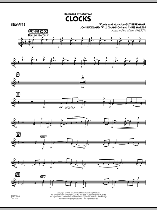 One of Coldplay's most popular hits, Clocks won Record of the Year at the 2004 Grammy Awards. Instantly recognizable and solidly scored, here is an excellent version for young jazz ensemble.