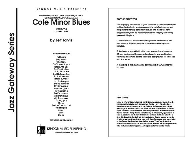 This great minor blues tune features sturdy swing rhythms and a memorable melody shared by the horn sections of the band. Any instrument may be featured during the written or ad lib open solo section. Written especially for developing groups, it is playable by 10-17 players and includes a guitar chord chart by Jim Greeson. Duration 3:50. Available in SmartMusic.