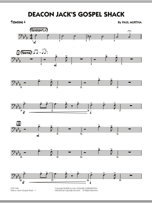 Diese Chart im swingenden Gospel-Stil ist in mittlerem Tempo gehalten und macht Spaß zu spielen. Enthält bluesige Ensemble-Licks und Solos für jede Kombination von Tenor, Trompete oder Posaune.