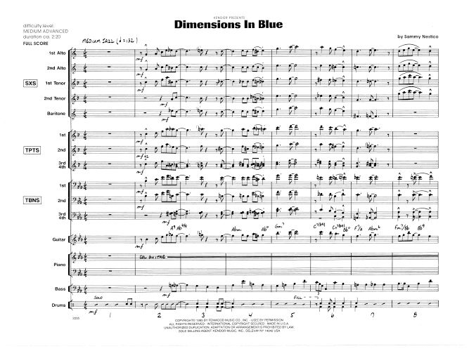 Originally written as a theme song for a television show, this swinger thrives on keeping good time and playing with a solid sound. A fully-voiced sax soli and full band shout are highlights, and short fills by the drummer are the only 'solo' requirements. Duration ca. 2:20.