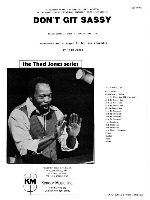 As recorded by the Thad Jones-Mel Lewis Orchestra on their Live At The Village Vanguard album, this spirited shuffle puts proficient bands through the paces. Articulations and rhythms must be played accurately for best results, and solos for piano, trumpets 2-4, and tenor sax are included. Duration 7:20.