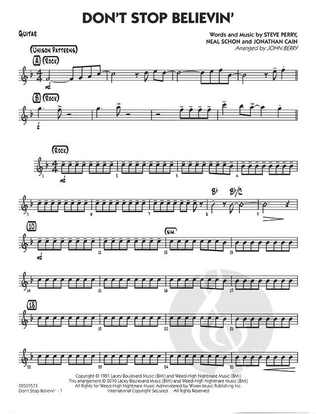 Here's the rock classic from the group Journey, and made famous recently in the TV series Glee, in a terrific easy chart that will go together quickly. Trumpets are featured on the melody with plenty of solid full band accompaniment.
