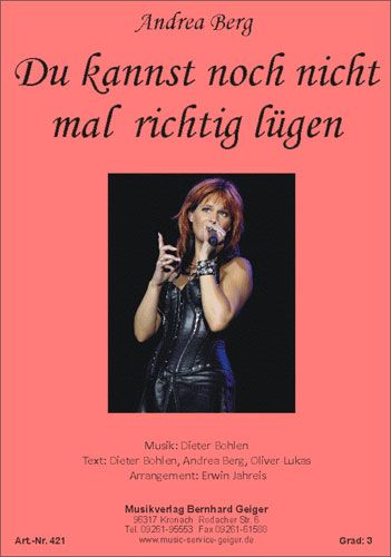 Der brandneue Titel von Andrea Berg aus Ihrem aktuellen CD-Album 'Schwerelos': Du kannst noch nicht mal richtig lügen für Bigband mit Gesang.