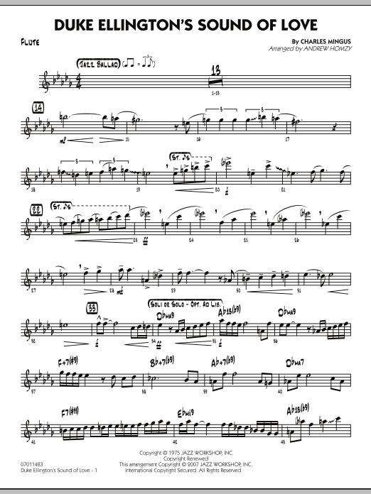 Charlie Mingus' distinctive take on the classic Ellingtonian ballad style provides a beautiful showcase for a variety of soloists, as well as lush full ensemble scoring. Also included is an optional solo for flute or piano.