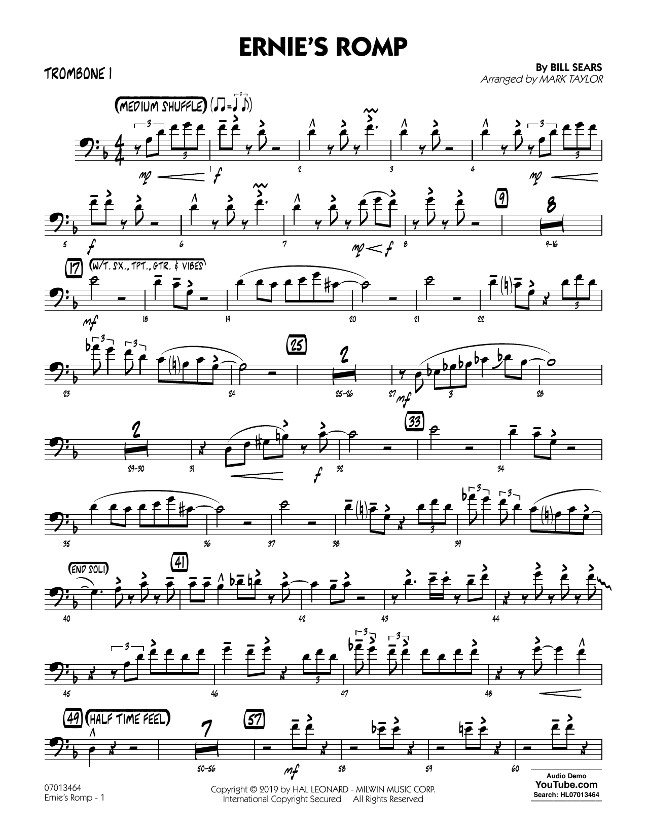 Here is a great-sounding chart for featuring a tenor sax and guitar duet (or just tenor sax). Utilizing a medium shuffle grove, this smooth chart also features a dialog between a small group and the full ensemble. The solo section (trumpet, then tenor sax) alternates between a half-time groove and straight ahead swing. Topped off with the powerful shout chorus for the full band!