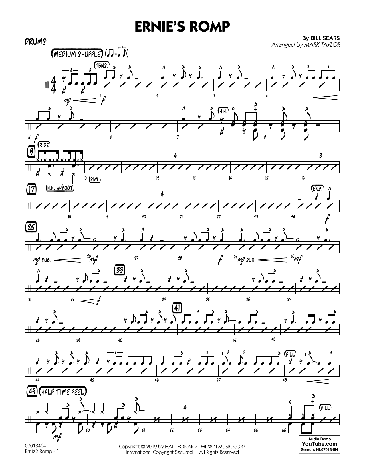 Here is a great-sounding chart for featuring a tenor sax and guitar duet (or just tenor sax). Utilizing a medium shuffle grove, this smooth chart also features a dialog between a small group and the full ensemble. The solo section (trumpet, then tenor sax) alternates between a half-time groove and straight ahead swing. Topped off with the powerful shout chorus for the full band!