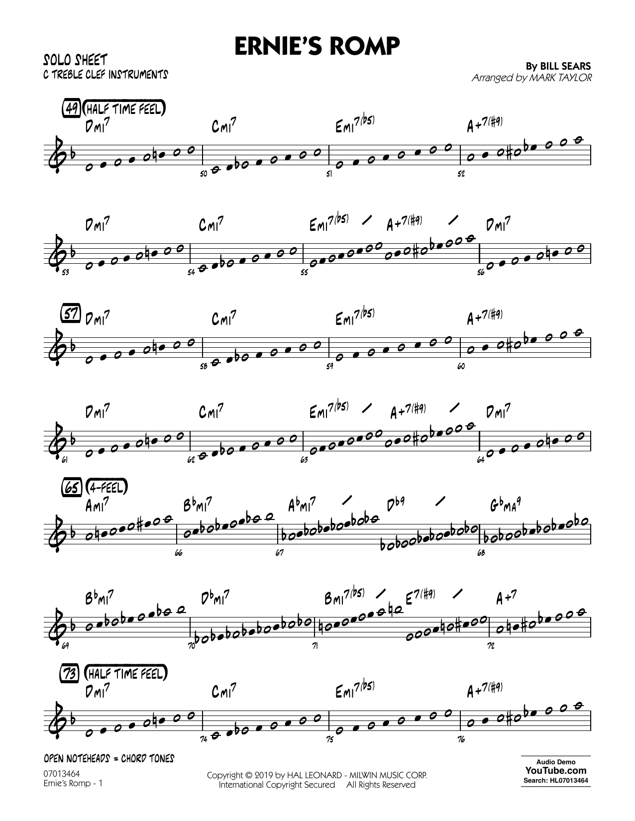 Here is a great-sounding chart for featuring a tenor sax and guitar duet (or just tenor sax). Utilizing a medium shuffle grove, this smooth chart also features a dialog between a small group and the full ensemble. The solo section (trumpet, then tenor sax) alternates between a half-time groove and straight ahead swing. Topped off with the powerful shout chorus for the full band!