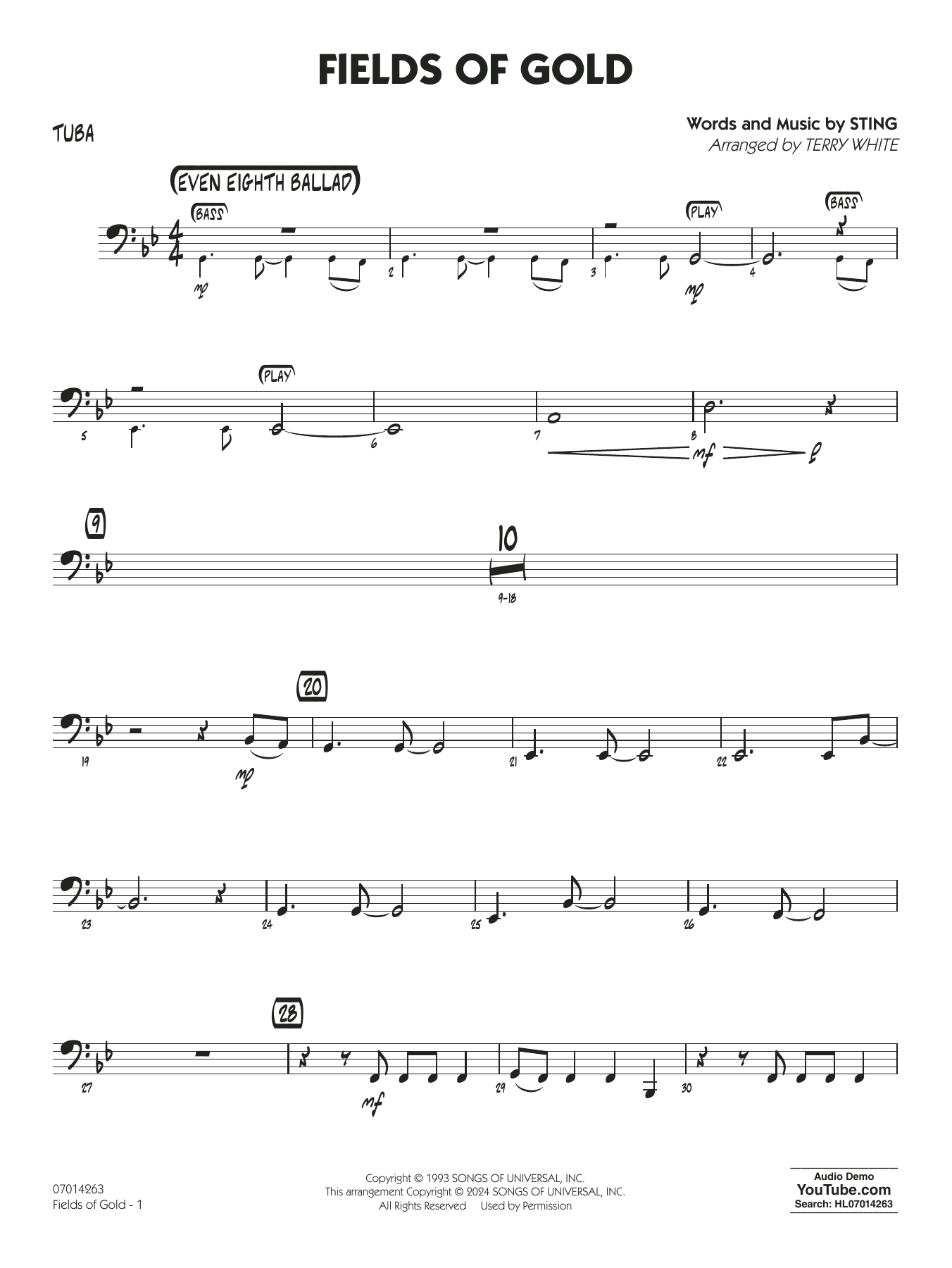 Stings "Fields of Gold" aus dem Jahr 1993 gilt als meisterhafte und eindringliche Ballade. Die hervorragende Bearbeitung von Terry White für junge Bands im leichten Pop-Stil enthält kurze Soli für Altsaxophon und Trompete. Der Tonartwechsel gegen Ende sorgt für eine schöne emotionale Auflockerung.