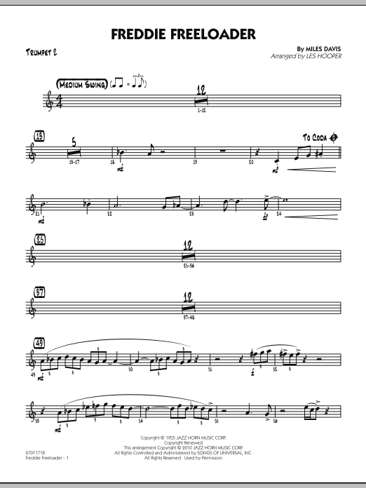 Originally recorded on the Miles Davis landmark recording Kind of Blue, here is a swingin' and updated take on this all-time blues favorite. Tasty full ensemble interludes surround solo space for alto sax, trumpet and bass. This chart is a perfect choice for festivals or contests.