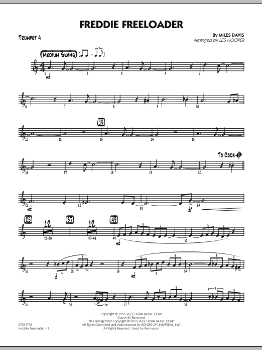 Originally recorded on the Miles Davis landmark recording Kind of Blue, here is a swingin' and updated take on this all-time blues favorite. Tasty full ensemble interludes surround solo space for alto sax, trumpet and bass. This chart is a perfect choice for festivals or contests.