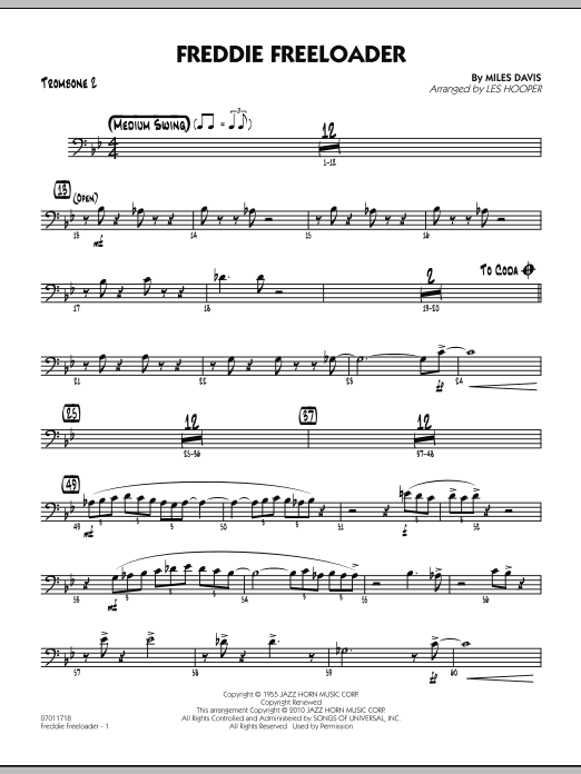 Originally recorded on the Miles Davis landmark recording Kind of Blue, here is a swingin' and updated take on this all-time blues favorite. Tasty full ensemble interludes surround solo space for alto sax, trumpet and bass. This chart is a perfect choice for festivals or contests.