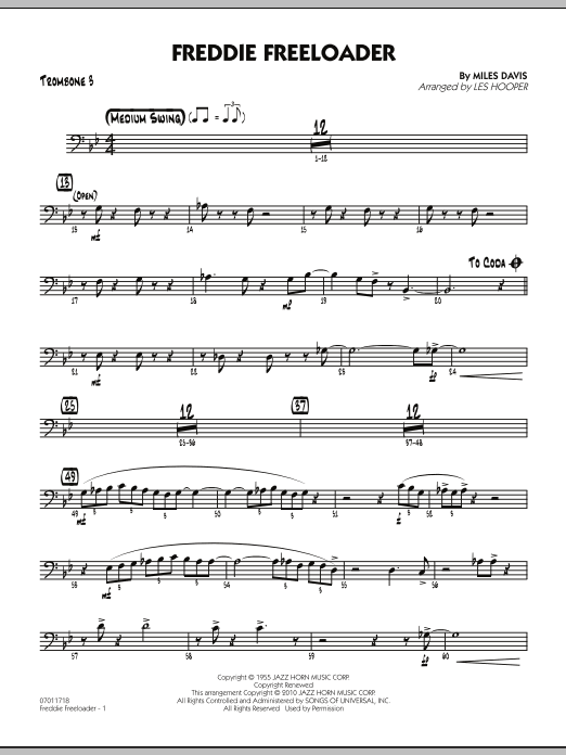 Originally recorded on the Miles Davis landmark recording Kind of Blue, here is a swingin' and updated take on this all-time blues favorite. Tasty full ensemble interludes surround solo space for alto sax, trumpet and bass. This chart is a perfect choice for festivals or contests.