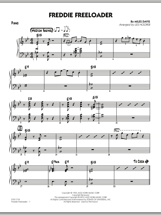 Originally recorded on the Miles Davis landmark recording Kind of Blue, here is a swingin' and updated take on this all-time blues favorite. Tasty full ensemble interludes surround solo space for alto sax, trumpet and bass. This chart is a perfect choice for festivals or contests.