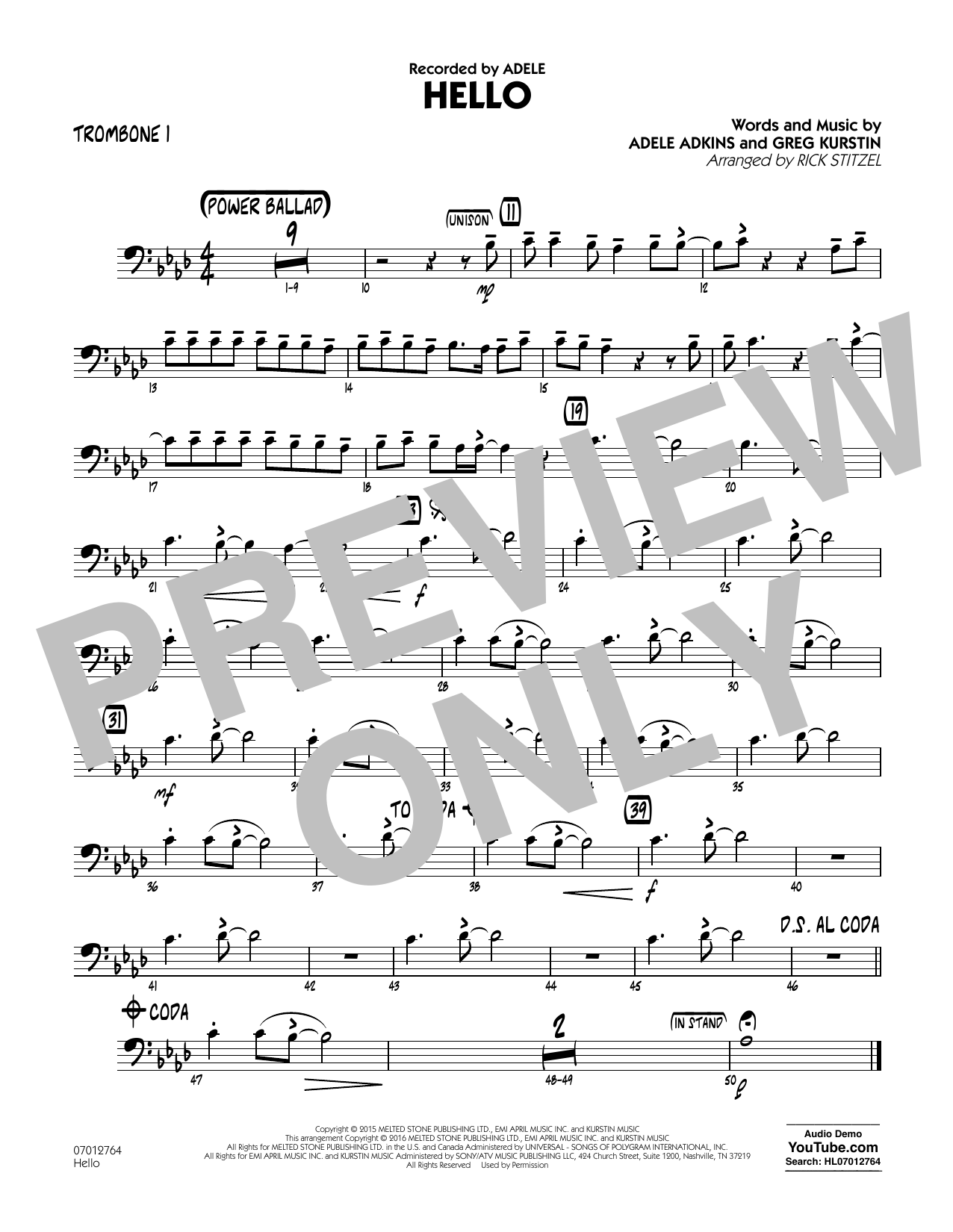 Adeles Balladen-Hit in einer wunderbaren Bearbeitung für junge Bands von Rick Stitzel. Die Melodie wandert vom einleitenden Altsaxophon-Solo zu den Posaunen und mündet im vollen Bandklang.