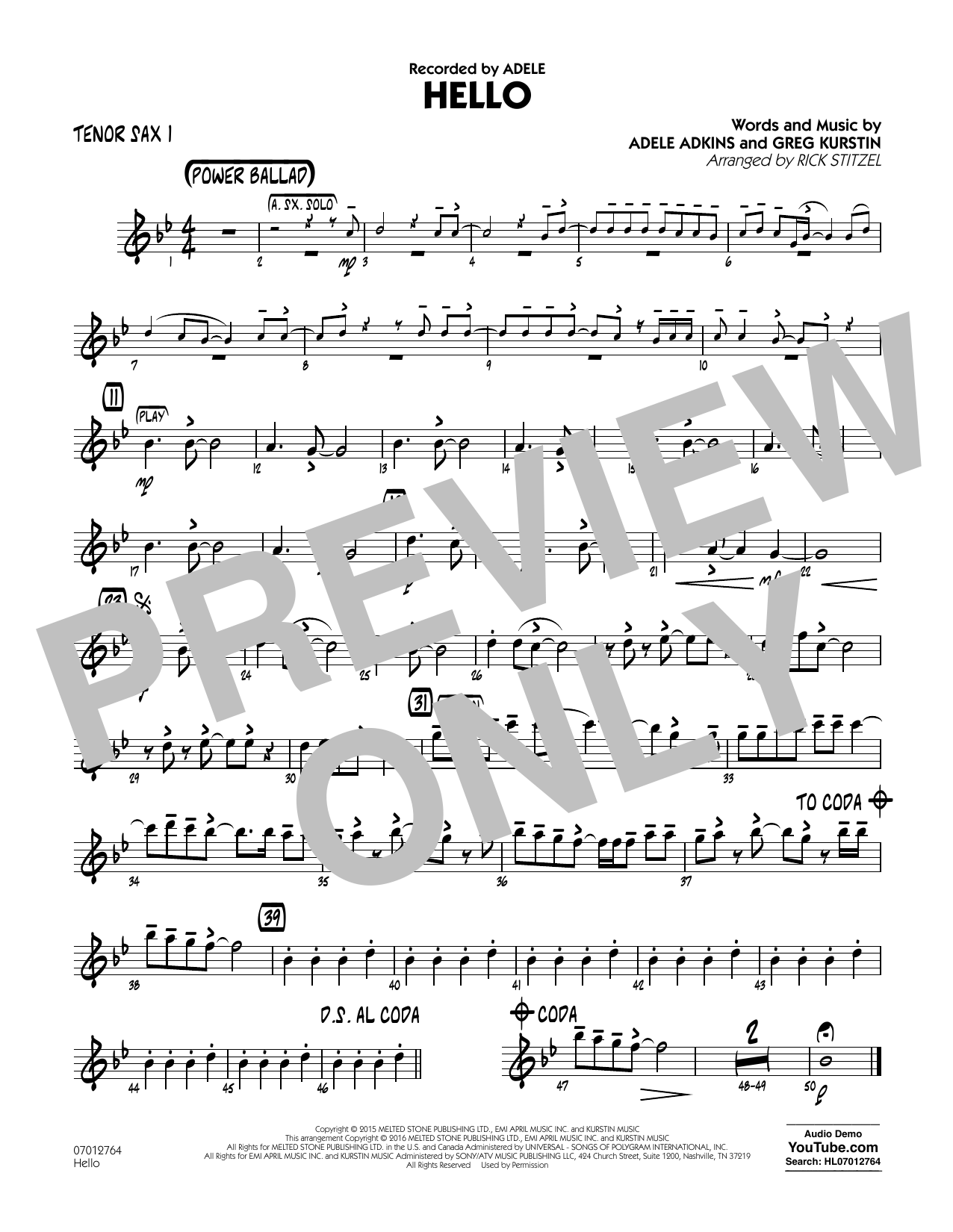 Adeles Balladen-Hit in einer wunderbaren Bearbeitung für junge Bands von Rick Stitzel. Die Melodie wandert vom einleitenden Altsaxophon-Solo zu den Posaunen und mündet im vollen Bandklang.