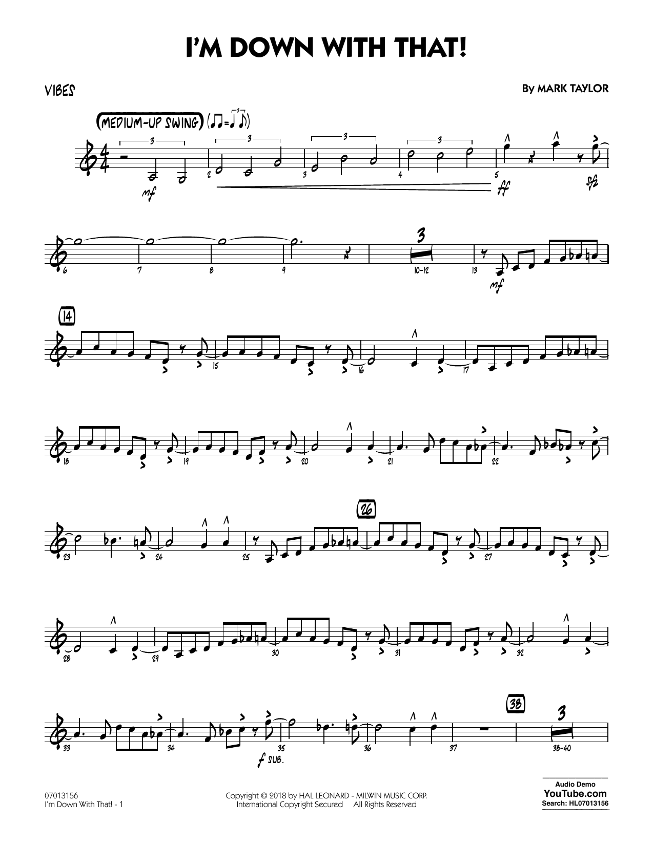 Composed in an up-tempo swing style (but with attitude!), here's a tour-de-force for the entire ensemble. Mark beautifully contrasts small ensemble scoring with full band passages, and provides solo opportunities for tenor sax and trumpet. A sax soli and shout chorus complete the package.