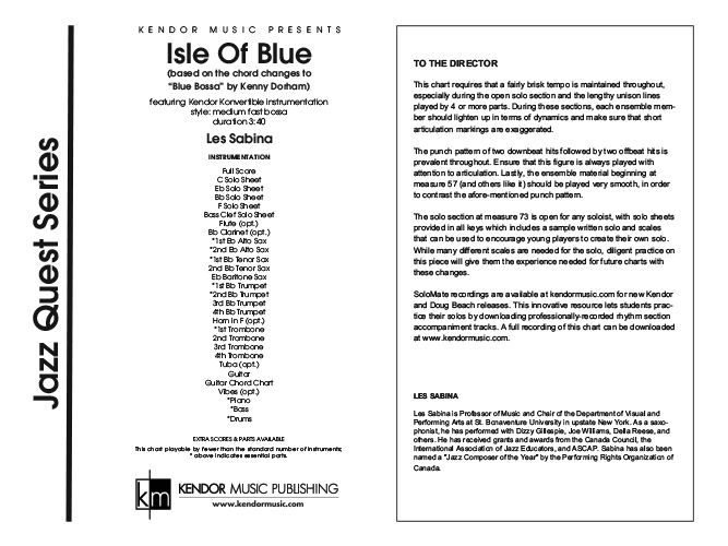 This medium-fast bossa for beginning groups is based on the chord changes to Blue Bossa by Kenny Dorham. The solo section is written out with solo sheets provided in all keys along with scales to assist students in improvisation. Duration 3:40