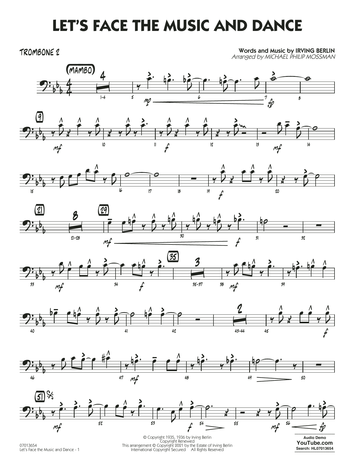 In den geschickten Händen des Arrangeurs Michael Mossman fühlt sich dieser Irving Berlin-Klassiker als Mambo zu Hause! Mit einigen harmonischen Falten und einer großartigen Mischung aus verschiedenen Stilen hat dieses Stück einen tollen Fluss und ein gutes Tempo. Für das Altsaxophon ist ein Solopart vorgesehen.