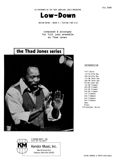 As performed by the Thad Jones-Mel Lewis Orchestra at the Village Vanguard, solo opportunities are given to trumpet and piano, but the solo chorus can be opened up for additional players as desired. Other highlights include a challenging sax soli, high brass punches, and a big shout that takes it all out in fine style. Duration 4:15.