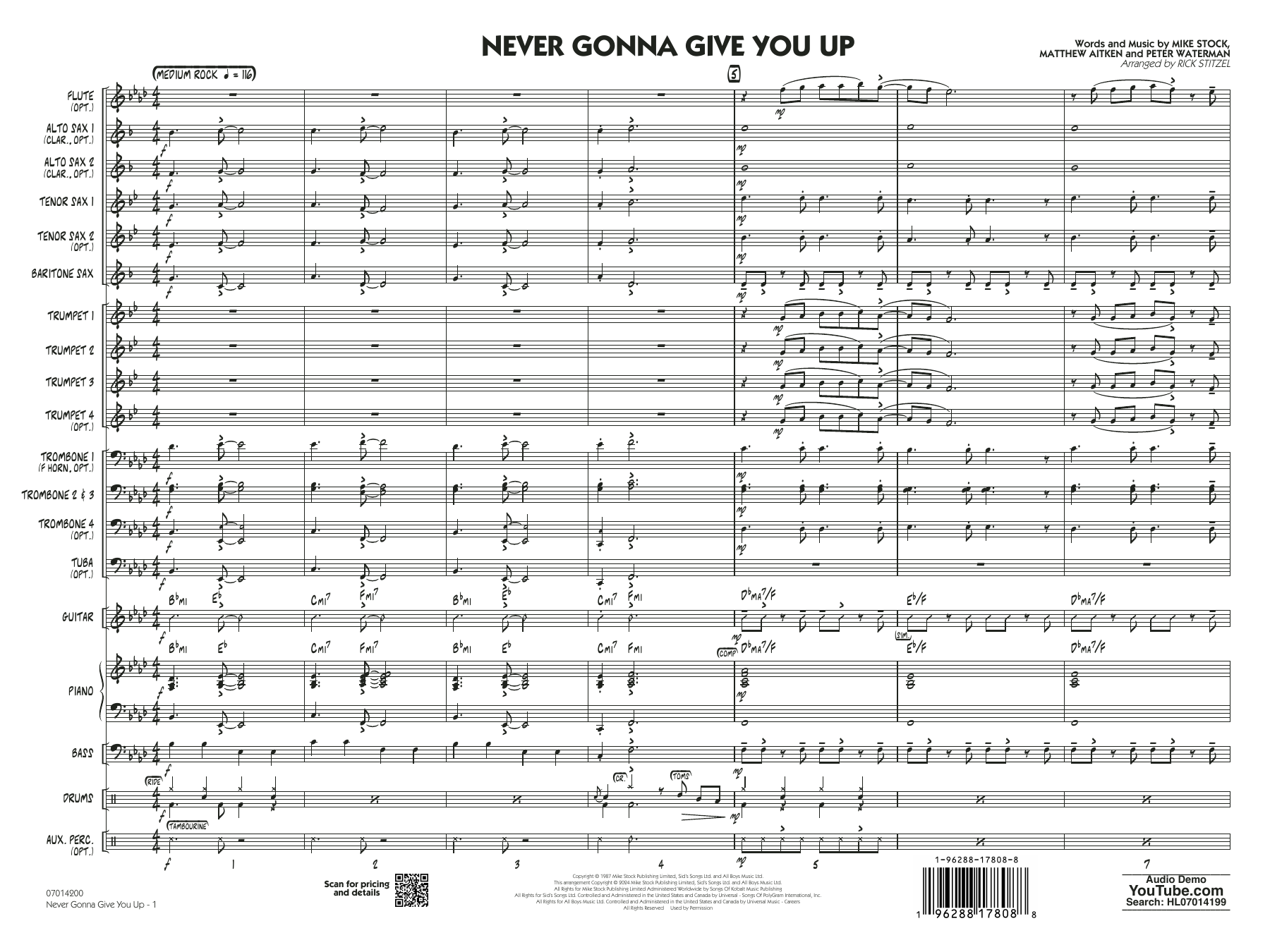 Der bekannte Rock-Hit von Rick Astley aus dem Jahr 1987 ist in der großartig klingenden Bearbeitung von Rick Stitzel für junge Bands sofort erkennbar und macht einfach Spaß zu spielen!