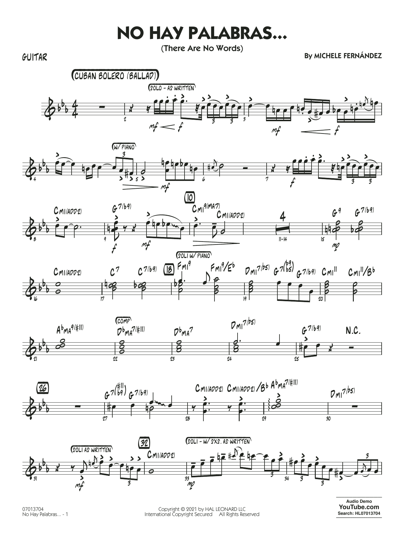 Der Bolero ist Kubas Version der Ballade, und diese wunderschöne, berührende Melodie mit üppiger Instrumentierung bietet Ihrer Band und besonders dem Altsaxophon die Gelegenheit, sich von der gefühlvollen Seite zu zeigen. Das Solo im Paquito D'Rivera-Stil ist ausgeschrieben, mit zusätzlichem Raum für Improvisation und einer optionalen Schlusskadenz.
