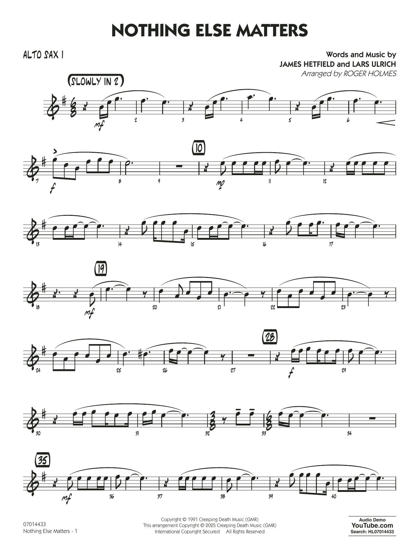 Bringen Sie den 6/8-Takt in Ihr Jazz-Ensemble mit diesem ausgezeichneten Arrangement von Metallicas Hit-Ballade aus ihrem legendären Black Album .