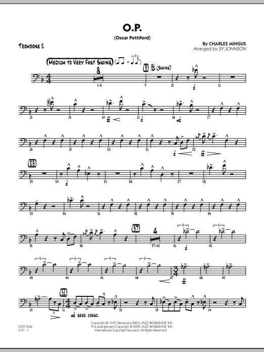 Titled in honor of Charles Mingus' good friend and mentor Oscar Pettiford, this swing chart opens with the two tenors, followed by all the saxes, and finally the entire ensemble. Whether you play this at a medium tempo or as a blazing burner, the result is the same - a unique-sounding chart that swings like crazy.
