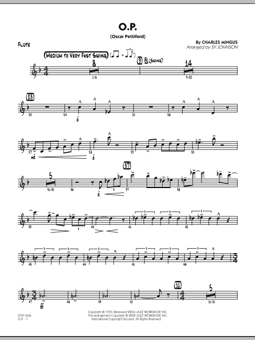 Titled in honor of Charles Mingus' good friend and mentor Oscar Pettiford, this swing chart opens with the two tenors, followed by all the saxes, and finally the entire ensemble. Whether you play this at a medium tempo or as a blazing burner, the result is the same - a unique-sounding chart that swings like crazy.