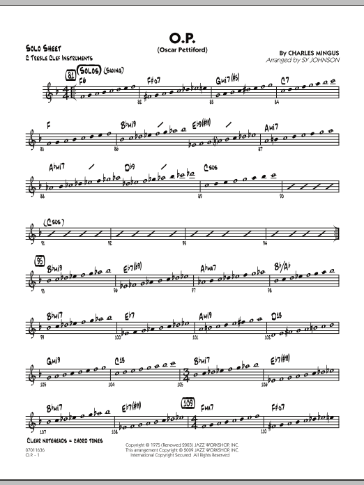 Titled in honor of Charles Mingus' good friend and mentor Oscar Pettiford, this swing chart opens with the two tenors, followed by all the saxes, and finally the entire ensemble. Whether you play this at a medium tempo or as a blazing burner, the result is the same - a unique-sounding chart that swings like crazy.