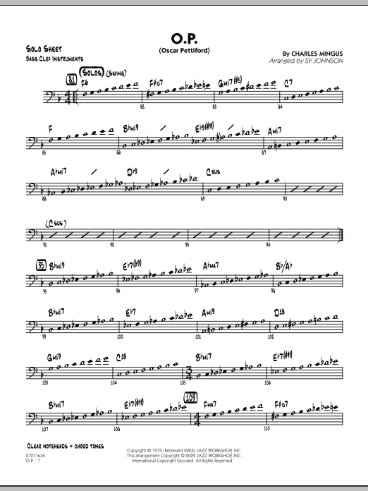 Titled in honor of Charles Mingus' good friend and mentor Oscar Pettiford, this swing chart opens with the two tenors, followed by all the saxes, and finally the entire ensemble. Whether you play this at a medium tempo or as a blazing burner, the result is the same - a unique-sounding chart that swings like crazy.