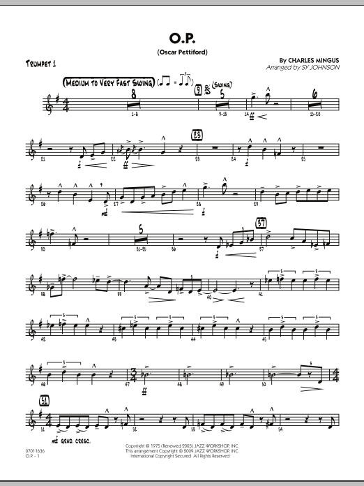 Titled in honor of Charles Mingus' good friend and mentor Oscar Pettiford, this swing chart opens with the two tenors, followed by all the saxes, and finally the entire ensemble. Whether you play this at a medium tempo or as a blazing burner, the result is the same - a unique-sounding chart that swings like crazy.