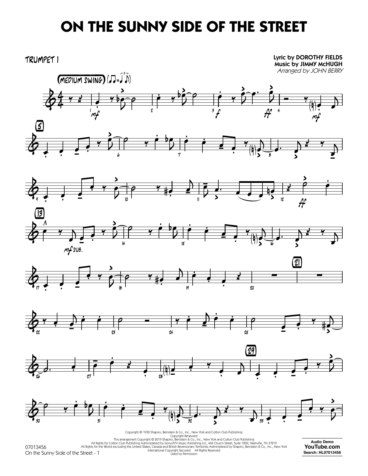 Dieses einfache Arrangement, das mit einer kleinen Gruppe (Alt, Tenor, Trompete und Posaune) beginnt, bietet viel Abwechslung in der Besetzung und einen schön fließenden, moderaten Swing-Stil. Außerdem gibt es ein kurzes Saxophonsolo und ein geschriebenes oder ad lib.