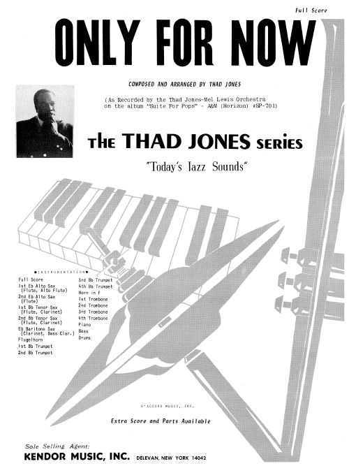 As recorded by the great Thad Jones-Mel Lewis Orchestra on the album Suite For Pops, this ballad showcases the breathy sound of flutes, the mellow sound of short flugelhorn solos (written lines provided), and the warmth of an improvised solo chorus for trombone. The chart calls for an expressive approach from everyone, and ends with a flugel fill over a sustained ensemble chord. Duration 6:22.