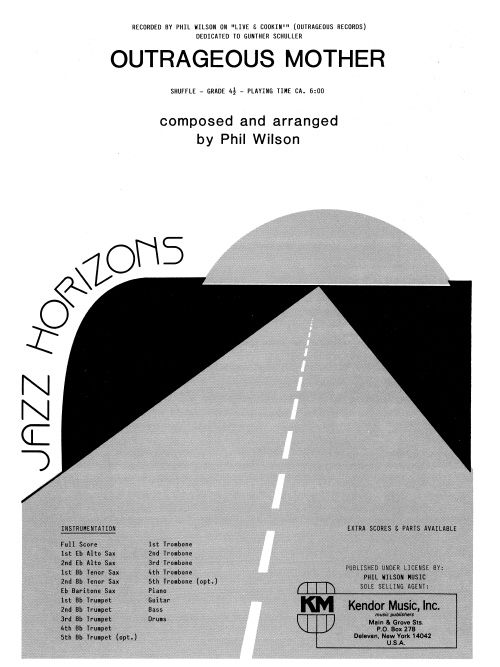 Recorded by Phil Wilson on the album Live & Cookin' on the Outrageous Records label, this irresistible swing shuffle assigns solos to piano and trombone, with plenty of full ensemble work to boost excitement and momentum. Brass ranges (Eb6 trumpet, Db5 trombone) require players with strong high chops. Duration ca. 6:00.